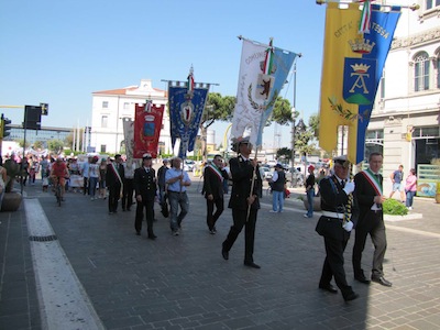 Dopo l’alzabandiera del Tricolore e della bandiera europea, il sindaco Albore Mascia ha salutato