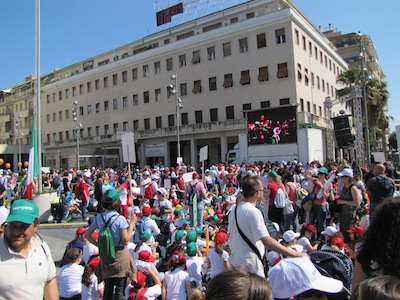 Una pacifica e colorata invasione di oltre 2.600 studenti, accompagnati da docenti e genitori, giunti da ogni parte d’Abruzzo a bordo di 65 pullman,un’iniziativa piena di musica, colori, allegria che tra l’altro ha visto la partecipazione anche dei rappresentanti istituzionali della Contea di Avila.