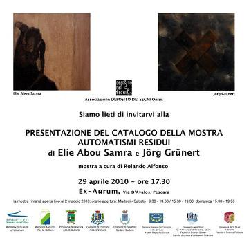 La Mostra “Automatismi residui” – patrocinata dal Ministero della Cultura Libanese, dalla Regione Abruzzo, dal Comune e della Provincia di Pescara, dal Comune di Spoltore, da Aiccre Abruzzo (Associazione Italiana per il Consiglio dei Comuni e delle Regioni d’Europa), dalla Facoltà di Lingue e Letterature Straniere e dalla Facoltà di Scienze Sociali dell’ Università “G.D’Annunzio” Chieti/Pescara e della Facoltà di Scienze Politiche Università degli Studi di Teramo – rappresenta l’aspetto più prettamente artistico degli scambi, ponendo in primo piano le produzioni dei due artisti che, attraverso il proprio lavoro, hanno contribuito a favorire la prevenzione del disagio sociale e culturale dei quartieri più svantaggiati ed emarginati del territorio libanese: Jorg Grünert e Elie Abou Samra, tedesco l’uno (ma italiano di adozione) e libanese l’altro, entrambi “formatisi” esteticamente in Italia.