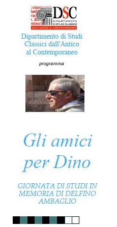 Le giornate di studi, organizzate dal Dipartimento di Studi Classici dall’Antico al Contemporaneo della Facoltà di Lettere di Chieti, sono dedicate alla memoria del Professor Delfino Ambaglio, insigne studioso della storia e della cultura della civiltà greca e romana.