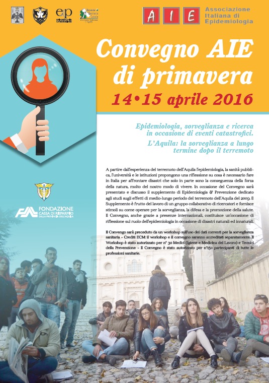 Il Convegno, anche grazie a presenze internazionali, costituisce un’occasione di confronto sul ruolo dell’epidemiologia, in occasione dei disastri naturali. L’idea è maturata su proposta dell’Associazione Italiana di Epidemiologia, che ha ritenuto necessario favorire una riflessione su cosa sia necessario fare in Italia, dal punto di vista sanitario, per affrontare i disastri, a partire dall’esperienza del terremoto a L’Aquila e di valutare in che modo la sanità pubblica si è mossa in occasione del terremoto, non tanto per rispondere all’emergenza, quanto nel periodo successivo, per accompagnare la difficile fase del post-terremoto, per impostare la lettura del bisogno di salute e l’azione per il cambiamento.