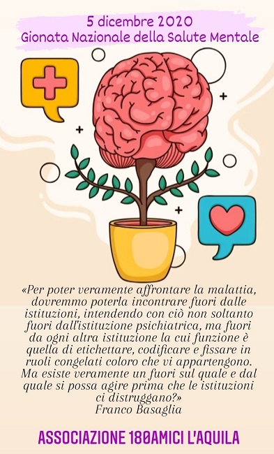 Tutte le criticità fin ora presentate, verranno discusse (ci auguriamo insieme ai “diretti interessati”, che non abbiamo mancato di invitare) durante l’evento online che si terrà dal 17 al 19 dicembre in occasione del decennale della 180amici L’Aquila. Ci auspichiamo, quindi, che le tre giornate possano essere di spunto per un confronto e le future collaborazioni con i Servizi e con le Istituzioni, nell’ottica di coprogettazione e coprogrammazione che dovrebbe essere assicurata in base al Codice del Terzo Settore.