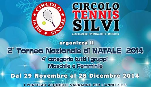 Giansante Alfonso e D’Orazio Thaisia hanno vinto il 2° Torneo di Natale di Tennis organizzato dal Circolo Tennis Silvi. La competizione era riservata a giocatori di 4° categoria; erano in programma le gare di singolare maschile e di singolare femminile.
