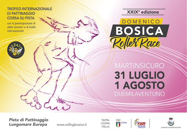 MARTINSICURO – Si svolgerà sabato 31 luglio e domenica 1 agosto la 29° edizione del “Domenico Bosica Roller Race”, importante evento estivo del pattinaggio organizzato come da tradizione a Martinsicuro dalla Asd “Rolling Pattinatori D. Bosica” che richiamerà alcuni dei migliori atleti del panorama italiano ed europeo reduci dai successi dei Campionati Europei 2021 appena disputati a Canelas in Portogallo.