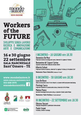 SANT’OMERO (TE) – “Sviluppo senza Lavoro, Ricerca e Innovazione, Arte e Comunicazione” è il tema trattato quest’anno da Mondo d’Autore, rassegna culturale del Comune di Sant’Omero (Teramo), giunta alla sua sesta edizione.