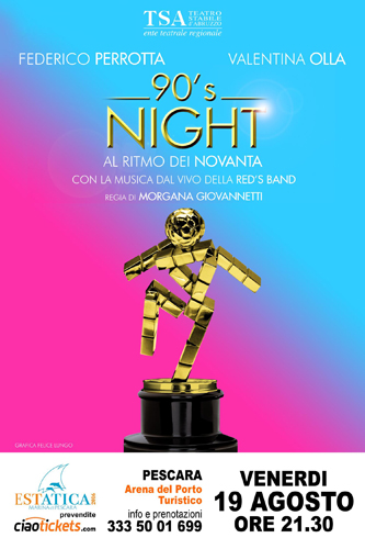 Dopo il successo di “Mammamiabella”, dunque, l’esplosivo duo Perrotta-Olla, torna ad animare il porto turistico di Pescara, con la notte degli Oscar degli anni novanta, una full immersion in quell’epoca che non passerà mai di moda. Chiunque sia cresciuto mangiando un Maxibon, guardando “Non è la Rai”, cantando con il Karaoke di Fiorello e ballando come Mauro Repetto degli “883”, quella di domani è la notte per rivivere tutte queste emozioni. L’energia di Valentina Olla, la comicità di Federico Perrotta e la travolgente musica della “Red’s band”, trascineranno la platea nel cuore degli anni 90. Dopo la tappa di Estatica, lo spettacolo, perfetto mix tra teatro, cinema e programma tv e della regia di Morgana Giovannetti, sarà in tournèe nei principali teatri nazionali ed stato, inoltre, già scelto come show di punta per gli “Smaila’s”, i ristotheatre di Umberto Smaila.