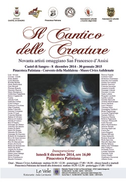 CASTEL DI SANGRO (AQ) -Novanta artisti omaggiano San Francesco d’Assisi con opere di pittura e di scultura.La mostra sarà inaugurata l’8 dicembre 2014 dal prof. Massimo Pasqualone a Castel di Sangro e rimarrà aperta al pubblico fino al 30 di Gennaio 2015. Parteciperanno gli artisti dell’Associazione “Lejo” presso il Museo Civico – Convento della Maddalena e quelli dell’Associazione culturale “L’Incontro degli artisti” che esporranno presso la Pinacoteca Patiniana. Per l’occasione è stato realizzato un elegante catalogo che contiene tutte le opere presenti in entrambi i Musei.