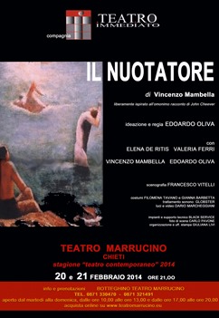 CHIETI – Secondo dei quattro appuntamenti della stagione Teatro Contemporaneo 2014 al Teatro Marrucino di Chieti.La Compagnia Teatro Immediato porterà in scena il 20 e 21 febbraio 2014, alle ore 21,”Il Nuotatore”.Curato da Edoardo Oliva, lo spettacolo scritto da Vincenzo Mambella, trova libera ispirazione sia dall’omonimo racconto breve di John Cheever sia dal film Un uomo a nudo (1968) di Frank Perry, con protagonista Burt Lancaster, tratto dallo stesso racconto. Sulla scena ci saranno Elena De Ritis, Valeria Ferri, Vincenzo Mambella, Edoardo Oliva. La regia è di Edoardo Oliva.