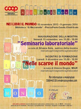 CHIETI – La Coop Adriatica in collaborazione con CVM – Comunità Volontari per il Mondo e l’Istituto Comprensivo IV di Chieti propone un’interessante mostra interculturale dal titolo “Nei libri il mondo” che si terrà dal 15 novembre 2013 al 9 gennaio 2014 a Chieti Scalo presso la biblioteca “G.Mezzanotte” dell’Istituto Comprensivo IV. Il progetto “Nei libri il mondo” propone una ricognizione internazionale di libri per ragazzi che raccontano il tema dei migranti, della mondialità, del meticciamento tra culture.