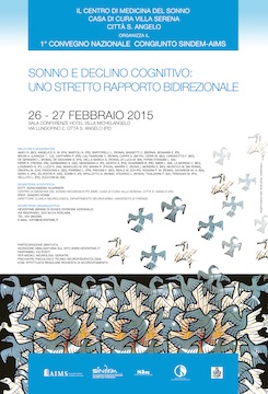 CITTA’ SANT’ANGELO (PE) – Il 26 e 27 febbraio 2015 si terrà a Città s. Angelo, nella sala conferenze dell’Hotel Villa Michelangelo, il convegno nazionale “ SONNO E DECLINO COGNITIVO:UNO STRETTO RAPPORTO BIDIREZIONALE” la cui segreteria scientifica è formata dalla dottoressa Biancamaria Guarnieri, neurologa,responsabile del Centro di medicina del sonno della Casa di cura Villa Serena, e dal professor Sandro Sorbi, direttore della Clinica Neurologica del dipartimento NEUROFARBA dell’Università di Firenze.