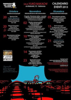 Ultimo appuntamento dell’anno, il 21 dicembre invece sarà un evento speciale con la compagnia Cascina Barà di Pisa che si esibirà, nella sala Yuko Nakachi’, con ‘Tessuto’, spettacolo teatrale basato sull’interazione tra recitazione, disegno dal vivo e musica live. Al centro della pièce, le immagini e le visioni di una ragazza in cerca di sua madre in un paese straniero.