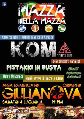 Si esibiranno dal palco situato ai piedi della collina giuliese, la band giuliese dei “Pistacchi in busta” e successivamente in concerto i “KOM Tribute band” la 1° tribute band di Vasco Rossi in Abruzzo.