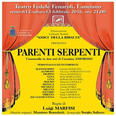 LANCIANO (CH) – Venerdì 12 e sabato 13 febbraio alle ore 21.00 presso il Teatro Fenaroli di Lanciano l’Associazione Culturale Teatrale Gli Amici della Ribalta di Lanciano porterà in scena la commedia in due atti di Carmine Amoroso PARENTI SERPENTI.