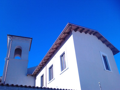 fronti: il primo ha interessato le strutture della casa canonica e della sagrestia, che sono state smontate e ricostruite ex novo; l’altro, invece, ha interessato la chiesa e l’adiacente congrega, per le quali è stato realizzato un attento consolidamento e restauro, perché si è in presenza degli elementi di pregio dell’edificio. Particolarmente delicato l’intervento che ha riguardato l’abside ed il campanile, quasi completamente crollati, ricostruiti con muratura in pietra listata, riproponendo le forme precedenti ai crolli dovuti al sisma. Così anche per la facciata principale della chiesa, in muratura in pietra sbozzata con un paramento esterno in pietra squadrata, si è proceduto con la ricostruzione della parte superiore crollata sul lato destro, riutilizzando le pietre del paramento originario.