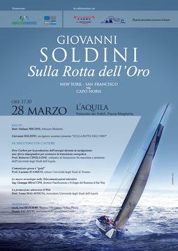 L’AQUILA – Il 28 marzo 2014 ,alle ore 17.30 a Palazzetto dei Nobili in Piazza S. Margherita ,2 a L’Aquila verrà presentato l’ ultimo libro di Giovanni Soldini : “Sulla Rotta dell’Oro, New York-San Francisco via Capo Horn”.E’ un’occasione unica per poter incontrare il Navigatore Oceanico più Grande , ma anche per dare una visibilità internazionale a L’Aquila.