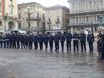 L’AQUILA – Si è svolta ieri a L’Aquila la manifestazione legata alla ricorrenza di San Sebastiano, patrono del corpo di Polizia Municipale.Alla cerimonia erano presenti, oltre all’assessore Stefania Pezzopane e al comandante della Polizia Municipale Eugenio Vendrame, anche tutto lo schieramento della Polizia Municipale dell’Aquila, una rappresentanza della Polizia di Roma Capitale (la polizia municipale romana) e di alpini, insieme al coordinatore organizzativo dell’Ana (Associazione nazionale alpini) Carlo Frutti, e i rappresentanti dell’associazione italo-americana “Columbus Citizens Foundation”.