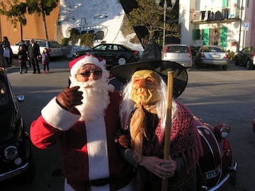 Sono arrivate nella gremita piazza principale del borgo diverse befane a bordo di vecchie Fiat 500 lucidate a nuovo (ed una addirittura con un Babbo Natale al volante) grazie al club club “Ossessionati dall’Intramontabile Fiat 500” di Giulianova.