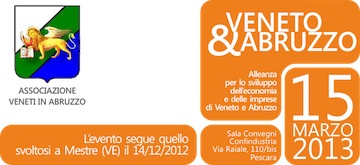 Veneto&Abruzzo è promosso dall’Associazione degli imprenditori e professionisti “Veneto e Abruzzo”, con il contributo scientifico del CERVAS Centro di Ricerca dell’Università degli Studi di Chieti-Pescara, con la collaborazione di Confindustria Veneto, Confindustria Abruzzo, Confartigianato Veneto, Confartigianato Abruzzo, Coldiretti Veneto, Coldiretti Abruzzo, Artigianfidi Vicenza, Confidi Mutualcredito di Pescara e Banca IFIS.