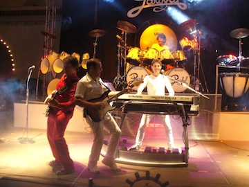 R- Siamo gli unici in Italia a fare tutto questo. Ad esempio abbiamo tre batterie sul palco e la cosa è molto d’effetto. Lo spettacolo è accompagnato da trovate scenografiche, quali fuochi durante alcune canzoni. C’è un apparato service e luci molto curato: niente viene tralasciato.