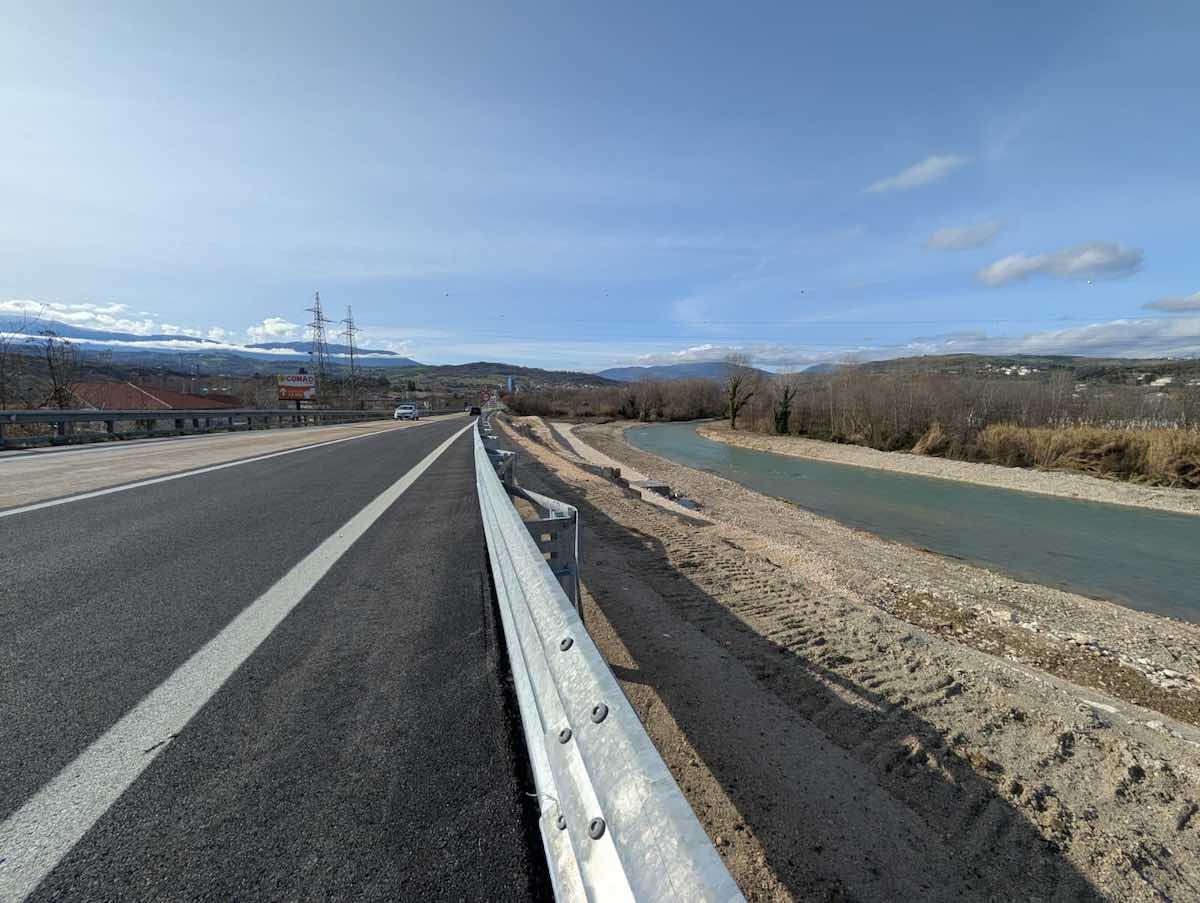 Anas ha avviato rilievi, indagini e progettazione per definire un intervento strutturale in grado di garantire la piena sicurezza del tratto. I lavori hanno previsto la ricostruzione della scogliera di protezione lungo il fiume, con massi ciclopici posati a secco per assicurare resistenza all’azione erosiva e consolidare il rilevato stradale. L’opera ha inoltre ripristinato la corretta sezione di deflusso del corso d’acqua, integrandosi nel contesto paesaggistico grazie all’uso esclusivo di materiali naturali.