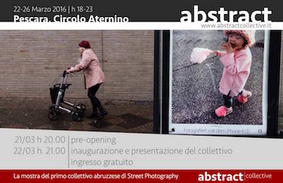 PESCARA – Dal 22 al 26 marzo, il circolo Aternino di Pescara ospiterà ABSTRACT, la mostra fotografica organizzata daAbstract Collective, il primo collettivo di street photographer abruzzesi.