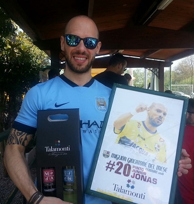 MONTESILVANO (PE) – Venti gol nella regular season, più uno nei quarti di Coppa Italia. E non è ancora finita. La stagione d’oro di Jonas Pinto Junior prosegue con i play off scudetto. Nei giorni scorsi, il pichichi di Bellarte ha ricevuto il premio come Migliore del mese dallo sponsor Talamonti, ennesimo riconoscimento in una stagione fin qui da urlo per l’ex della Marca.