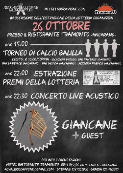 Ma non è tutto… La giornata di Domenica 26 Ottobre inizierà nel primo pomeriggio. Si parte infatti con il Torneo di Calcio Balilla dell’ACVC, che prevede premi in buoni carburante e che proseguirà fino all’ora di cena. Una volta terminato il Torneo per chi volesse ci sarà la possibilità di cenare al ristorante pizzeria Tramonto, che offre sempre grande qualità a prezzi molto vantaggiosi. Ci sarà poi spazio per l’estrazione dei premi della Lotteria ACVC. Proprio la Lotteria è un mezzo molto importante per il prosieguo delle attività dell’Associazione Culturale Valerio Capponi. Ogni biglietto, infatti, è un piccolo mattoncino che servirà a costruire non solo il prossimo INDIeVISIBILE festival, ma anche ogni altro evento in ambito Artistico e Culturale che si vorrà portare avanti. Urge ricordare che l’ACVC nasce con lo scopo di ricordare Valerio e lo fa proprio organizzando eventi legati a quelli che erano i suoi interessi e le sue passioni. Inoltre l’Associazione fa sempre di tutto per organizzare tutti i propri eventi senza far pagare un biglietto di ingresso. Questo proprio per la forte volontà di rendere gli eventi accessibili a tutti. Subito dopo l’estrazione dei premi ci sarà il Live Acustico di Giancane + Guest…