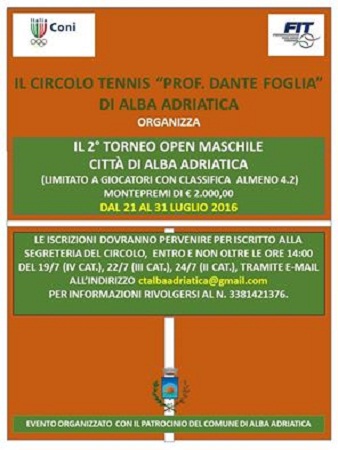 ALBA ADRIATICA (TE) – Si è disputato, sui campi del Circolo Tennis “Prof. Dante Foglia” di Alba Adriatica, il 2° Torneo Open maschile Città di Alba Adriatica.