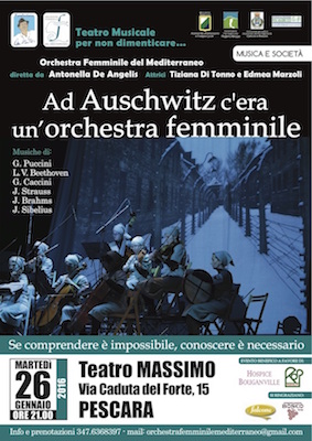 PESCARA – Martedì 26 gennaio, alle ore 21 al Teatro Massimo di Pescara, andrà in scena lo spettacolo di teatro musicale “Ad Auschwitz c’era un’orchestra femminile”. La scorsa stagione la pièce ha conquistato e commosso il pubblico di numerose città italiane ed è stata definita dalla critica come “uno degli spettacoli, in occasione della Giornata della Memoria, più coinvolgenti degli ultimi anni”.