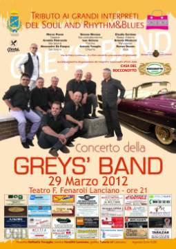 LANCIANO (CH) – Giovedì 29 Marzo 2012, alle ore 21.00, la GREYS’ BAND dedica uno speciale tributo ai grandi della musica Soul e Rhythm ‘n’ Blues dalla prestigiosa scena del Teatro Fedele Fenaroli di Lanciano (Ch).