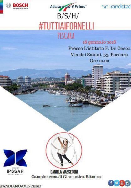 Quest’anno la Bosch ha pianificato otto tappe in altrettanti Istituti Alberghieri di diverse regioni italiane e il ‘De Cecco’ di Pescara è stato scelto come scuola di assoluto prestigio e di spicco per il centro-Italia. L’evento di domani vedrà la presenza di un team della Bosch che racconterà le proprie esperienze e di uno sportivo famoso, nel nostro caso la campionessa Masseroni, che ‘educallenerà’ i ragazzi sul tema della corretta nutrizione”.