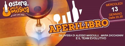 L’evento, nato nel 2014, è diventato un punto di riferimento del territorio pescarese per quanto riguarda presentazioni di libri e incontri d’arte. Capitanato dall’attrice Sara Iannetti e dall’editore-scrittore Alessio Masciulli l’Aperilibro nasce da un’idea di Maria Zaccagnini, titolare dell’Osteria che ha creato una squadra vincente (la parte musicale è affidata a Dino Scocco e Francesco Mangifesta) di artisti che due mercoledì al mese trasformano l’Osteria in un salotto letterario moderno. Ottimo cibo, un calice di vino amore per i libri e per l’arte, questo è Aperilibroil mercoledì all’Osteria della Musica di Cepagatti via Quattroventi 71. Evento in collaborazione con la casa editrice Edizioni IlViandante.