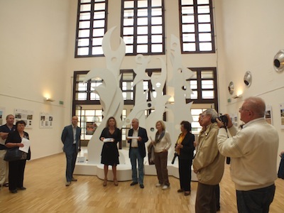 che presto – ha detto il Direttore Della Penna – verrà reintitolato ‘Spazio Alviani’, prevedendo l’utilizzo dell’intero spazio cui il tunnel dà accesso e che ospiterà eventi e mostre legate all’arte contemporanea e post-contemporanea. Alviani realizzò l’opera in occasione della manifestazione ‘Fuori Uso’ del 1995, ospitata all’interno dell’Aurum che all’epoca era un rudere in rovina. Da lì abbiamo portato il pubblico nella Sala degli Alambicchi, che prima conteneva la strumentazione per la distilleria e oggi ospita invece la mostra dell’Associazione ‘Ville e Palazzi dannunziani’; e al centro della sala si trova l’opera di Giulio Turcato ‘Superamento’; quindi si passa nella Sala lettura, aperta da poco presso l’Aurum e destinata alla lettura, allo studio, con una libreria fornita dei più svariati testi; quindi la Sala Tosti, ossia l’Auditorium dell’Aurum, le Sale Cascella, la Sala D’Annunzio, piazzale Michelucci, che la scorsa estate ha ospitato concerti ed eventi del Festival, la Sala Pomilio, un vero museo che custodisce gli oggetti legati alla storia della distilleria, le sale Flaiano e Barbella, la Sala intitolata all’architetto Sabatino Di Giovanni sino alla straordinaria terrazza del Kursaal che domina l’intera pineta dannunziana.