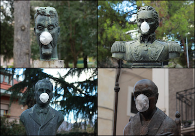 Nell’ iniziativa sono stati utilizzati materiali rimovibili che non danneggiano le statue né l’ambiente circostante. Abbiamo voluto organizzare questa azione simbolica e “situazionista” in pieno giorno per rimarcare la sua finalità estremamente nonviolenta ed altamente simbolica.