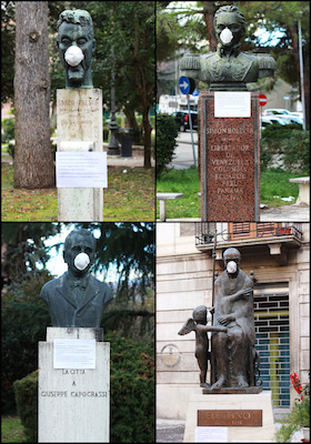 SULMONA (AQ)- Ieri pomeriggio alcune statue della nostra città si sono chiaramente espresse contro la centrale e il metanodotto della Snam. Dotate di mascherine antipolveri hanno dichiarato a loro modo la contrarietà alla realizzazione delle opere.