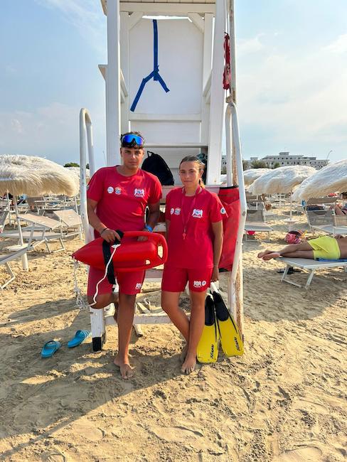 Giovanni D’Elia, bagnino Angeli del Mare Rescue Italy FISA: “Mercoledì 13 agosto, nel primo pomeriggio, presso gli stabilimenti balneari Playa Hermosa e Poseidon di San Salvo (CH). Stavo andando in aiuto al mio collega Giovanni D’Elia, in postazione 8, impegnato con una bambina ferita da una conchiglia sulla battigia. Contemporaneamente ho sentito alcuni bagnanti che richiamavano la mia attenzione, chiedendo soccorso per un signore in difficoltà in mare. Mi sono immediatamente tuffata in acqua e ho raggiunto il signore a nuoto. L’ho portato a riva con l’aiuto del mio collega, mentre alcuni bagnanti e parte dello staff di Playa Hermosa ci hanno aiutato ad allontanare la restante parte dei bagnanti incuriositi. Raggiunta la battigia con il pericolante, l’abbiamo messo in posizione laterale di sicurezza e abbiamo chiamato i soccorsi. Il signore si trovava all’altezza dell’ultima boa del corridoio di lancio prima dei frangiflutti. Ci ha riferito, dopo il soccorso, che non ha più sentito la sabbia sotto i suoi piedi e, preso dal panico, anche a causa della forte corrente, ha ingoiato acqua. Abbiamo chiamato il 118, il pericolante è stato controllato lì sul posto, non è stato portato in ospedale, grazie all’immediato intervento degli Angeli del Mare”.