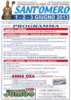 TRE GIORNI DI FESTA A SANT’OMERO – I festeggiamenti al Santo partiranno da sabato 1° giugno e sono organizzati dalla parrocchia della Santissima Annunziata con il patrocinio dell’Amministrazione Comunale.