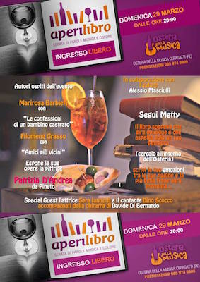 CEPAGATTI (PE) – L’aperilibro sta diventando il punto d’incontro più importante della scena pescarese dove si fondono libri e lettori avvalendosi di una location insolita e stimolante: un pub. Grazie all’idea dello scrittore Alessio Masciulli e della titolare Maria Zaccagnini, la domenica L’Osteria della Musica di Cepagatti, in C.da Rapattoni (Pe) si trasforma in un luogo d’arte e di emozioni, dove poter gustare ottimo cibo e buona cultura in un’atmosfera rilassante fatta di musica e amicizia.