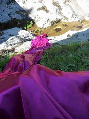 hanno raggiunto l’Eremo di San Bartolomeo (N42°10’55’’ – E14°2’21’’) l’8 maggio 2012 per suggellare l’avvio della loro collaborazione. Nel massimo rispetto del luogo, i due artisti hanno steso dalla sommità del monumento un drappo color magenta di oltre cento metri che, adagiandosi morbidamente sulla roccia e sul terreno, si è riversato nel torrente sottostante per arricchirsi con l’acqua di altre fonti. Un’installazione site specific che, traendo la nota cromatica dagli alberi di giuda in fiore, ha interessato il paesaggio per poche ore, dalle 7.35 alle 10.52, così da restituire rapidamente il luogo sacro ai visitatori. Per maggiori informazioni: https://youtu.be/jqPJtgtXWN0.