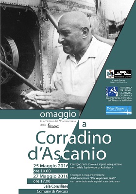 La Sala Consiliare sarà lo sfondo di una mostra che è solo parte del tributo che abbiamo voluto rivolgergli. La giornata si aprirà con i saluti istituzionali dei due sindaci di Pescara e Popoli Marco Alessandrini e Concezio Galli e proseguirà con l’illustrazione delle iniziative a cura della soprintendente Maria Teresa Spinozzi e dello storico dell’associazione Prima Pescara Federico Orletti. Ospite al centro di questa prima giornata sarà l’ufficiale abruzzese Carla Angelucci, pilota istruttore dell’aeronautica militare che racconterà la sua esperienza nei cieli d’Italia e non solo anche come primo istruttore di volo donna delle forze armate italiane”.