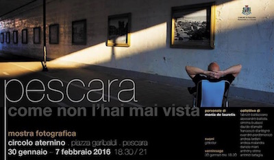 PESCARA – “Pescara come non l’hai mai vista” è un progetto fotografico nato con l’intento di mostrare la città diversamente da come si è abituati a vederla – dice l’assessore alla Cultura Giovanni Di Iacovo – I luoghi più visitati, così come angoli meno conosciuti, verranno presentati attraverso i differenti punti di vista di 12 fotografi della nostra area. Monia De Lauretis proporrà una personale di 26 scatti raccolti nel corso del 2015, mentre la collettiva dallo stesso tema che l’accompagna presenterà il lavoro di Fabrizio Baldassarre, Alessandro Battista, Simona Budassi, Davide D’Amato, Francesco D’Antogno, Evandro Pierdomenico, Andrea Lardani, Andrea Malandra, Daniele Miani, Anthony Stone e Antonio Tartaglia.