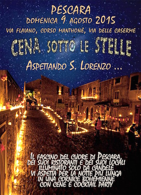 PESCARA – Oggi,domenica 9 agosto 2015,dal tramonto in poi luci spente per vedere le stelle a Pescara Vecchia dove il Consorzio Pescara Vecchia propone l’evento “Aspettando Lorenzo a lume di candela”.