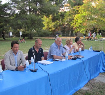 Presenti all’incontro l’assessore allo Sport e ai Parchi del Comune di Pescara Nicola Ricotta, la giunta comunale, i consiglieri comunali di centro-destra e il geometra Giuliante, autore del progetto. Ricotta ha detto che il progetto partirà con la realizzazione di un playground, ossia un mini-campo gioco per calcio a cinque, basket, pallavolo e pallamano, dotato di un minimo di servizi, ossia una doccia per i bambini, spogliatoi in strutture assolutamente removibili. L’assessore ha altresì ribadito che il progetto non prevede alcuna cementificazione, non eliminerà i percorsi per la passeggiata e lo jogging, né le aree per lo sgambettamento dei cani, che anzi verranno migliorate e meglio attrezzate, arricchendo di servizi la struttura.