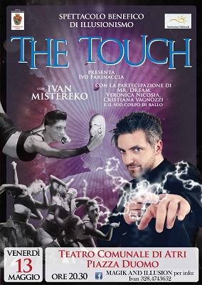 Lo spettacolo di Illusionismo “The Touch”, giunge alla seconda edizione nel Teatro Comunale di Atri. Ideato e progettato da Ivan Cipolloni, con la collaborazione della coreografa Cristiana Vagnozzi, The Touch è uno spettacolo adatto a tutta la famiglia. Uno spettacolo sorprendente che fonde varie arti: magia generale, comedy, grandi illusioni, mentalismo e danza contemporanea.