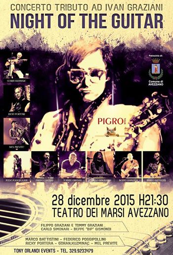 L’evento è stato proposto ed organizzato dal team manager abruzzese Tony Orlandi, già ‘padre’ ed ideatore di punta di numerosissime manifestazioni di piazza estive e non, dedicate, appunto, alle sette note di alta qualità. Attesa affamata, quindi, per una kermesse da urlo: si esibiranno, sia in alternanza che in doppietta – come se a sparare, quella notte, sarà la sola ed inimitabile rivoltella del rock – nomi forti, robusti e mai calpestati dal grido rumoroso comune, appartenenti al panorama della musica italiana sempiterno, quali il chitarrista Federico Poggiopollini, il ‘fratello di chitarra’ Ricky Portera, il luminoso Mel Previte, il saggio Goran Kuzmnac e le anime nere del ‘Pigro tour’, quali Filippo Graziani, Tommy Graziani, cantautore il primo, batterista il secondo, accompagnati, in questo oramai noto viaggio musico-storico-emozionale nella grande parentesi epocale firmata da Graziani padre stesso, dai musicisti storici di Ivan, quali Antonio Rigo Righetti, attuale straordinario bassista di Ligabue e Carlo Simonari, tastierista di fama e di verve eccezionale.
