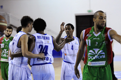 IL MATCH – Alla palla a due, Omegna parte con Cappelletti, Saddler, Conger, Masciadri e Iannuzzi. Roseto con Pitts, Moreno, Marini, Carenza e Bryan. Prima uscita stagionale da titolare per Carenza, mentre Jackson non è sceso in campo a casusa di uan contrattura muscolare. In avvio, sono Saddler e Cappelletti a sbloccare il punteggio per i padroni di casa, mentre Roseto risponde con Marini e Carenza, quest’ultimo alla sua prima uscita da titolare nello starting five di coach Trullo. Iannuzzi e Bryan danno avvio ad una bella sfida sotto le plance, con il capitano della Mec-Energy che porta i suoi sull’11-13 dopo i primi 5 minuti. Saddler non ci sta e chiude un mini parziale di 4-0, ma Bryan sembra inarrestabile: 10 punti nei primi 6 minuti per l’italo-dominicano. La Paffoni, tuttavia, prova a fuggire con le triple di Cappelletti e Masciadri (24-19). Marini, però, trova ben 6 punti consecutivi in meno 60 secondi e accorcia fino al -1, prima del 28-25 infilato da Vildera, con cui vengono archiviati i primi 10 minuti. Roseto parte forte nel secondo quarto con un break di 0-7 (28-32), nuovamente con Marini in evidenza (10 punti in 11 minuti). Borra e Dip si iscrivono a referto, con i rosetani che provano a mantenere i due possessi di vantaggio nei confronti dei piemontesi. Trullo, che come già detto deve rinunciare a Jackson, pesca il “jolly” dalla panchina, con Bartoli che mette la tripla del 32-37. Magro vuole più intensità in campo e Gurini, appena entrato, trova la 4^ “bomba” per Omegna, che porta l’allenatore degli Sharks a richiedere time-out. E’ ancora Bartoli a pungere i locali, con la tripla del 35-40. I rossoverdi vanno in netta crisi contro la rapidità dei biancazzurri che, a 3’ dall’intervallo, toccano addirittura il +12 (38-50), propiziato da un Pitts scatenato, con 11 punti segnati tutti nel secondo quarto. Saddler e Iannuzzi fanno del loro meglio, per una Paffoni in palese difficoltà, ma Pitts non ne vuole sapere: altri 2 punti che gonfiano il devastante parziale rosetano della seconda frazione fino a 16-29, che significa dunque intervallo sul punteggio di 44-54.