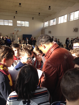 “andare nelle scuole è la cosa che preferisco perché stare a contatto con i ragazzi mi fa dimenticare tutti i problemi. Con i loro sorrisi, la loro spensieratezza ed euforia, potrei stare con loro per ore. Ho passato una mattinata stancante – ride, ndr – ma, diamine, quanto mi sono divertito!”.