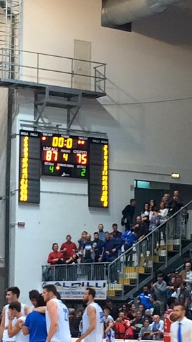 Baldasso apre la quarta frazione di gioco con due triple, Radonijc ne realizza una nel mezzo e siamo sul 71-70 a 8′ dalla fine. Il montenegrino biancazzurro va ancora a segno, poi Fattori infila da sotto il 75-50 a 5:45 dalla fine. Green fa 1/2 dalla lunetta, Mei risponde da 3 ma Baldasso realizza il 78-75 a 4:30 dalla fine. Paci realizza da sotto, poi Mei sgancia la bomba del +8 (83-75) a 3:03 dalla conclusione del match. Smith apre con un altro canestro gli ultimi due minuti, e successivamente chiude i conti con due punti dalla media: finisce 87-75.