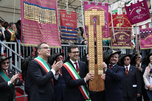 Fra le emozioni che il Raduno lascia c’è stata anche la corsa finale, è stata una sensazione unica accompagnare l’Abruzzo alla fine del corteo e consegnare al Comune di San Donà di Piave un testimone che abbiamo davvero vissuto con grande serietà e responsabilità. Siamo certi che il Veneto l’anno prossimo saprà dare un abbraccio altrettanto caloroso ai fanti piumati. L’Abruzzo e la città hanno vissuto un momento davvero indimenticabile e hanno ricambiato come tradizione vuole, come fa una terra forte e gentile”.