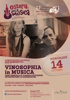 Appuntamento con “Vinosophia in Musica” all’Osteria della Musica